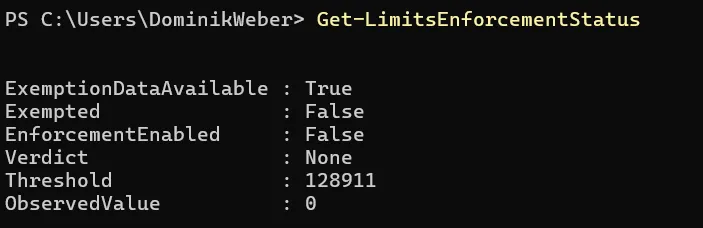 Der Status des Rollouts kann jederzeit mit der Exchange Online PowerShell abgefragt werden: