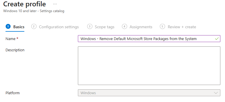 Geräte > Windows > Konfigurationsprofile > “Windows - Remove Default Microsoft Store Packages from the System” > Übersicht