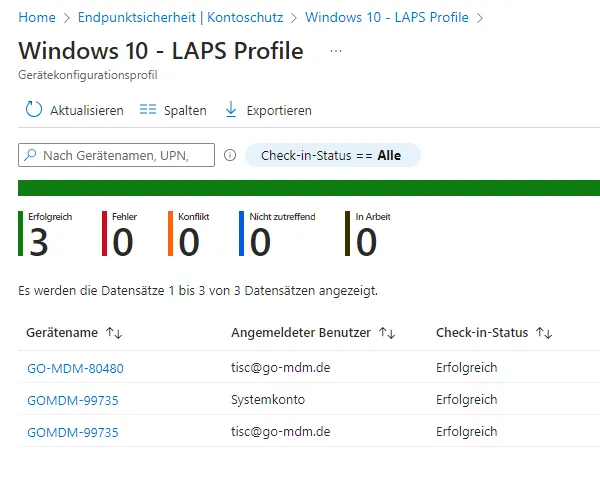 Über das Intune-Portal: Endpunktsicherheit > Kontoschutz > Ihre LAPS-Richtlinie > Bericht anzeigen.