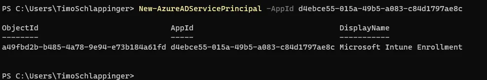Nach Eingabe der Befehle ist die App auch unter Azure Active Directory > Mobility (MDM and MAM) sichtbar.