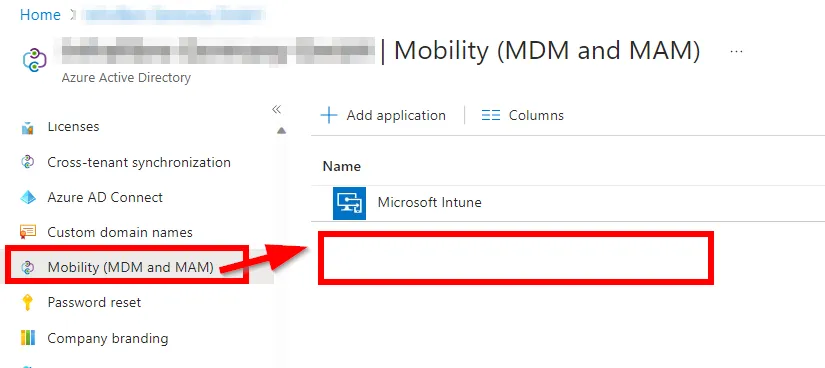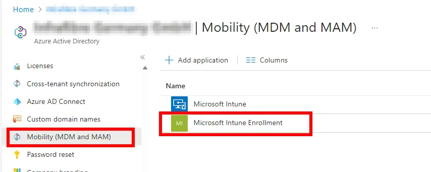 Die Intune Enrollment Application befindet sich normalerweise unter Azure Active Directory > Mobility (MDM and MAM)