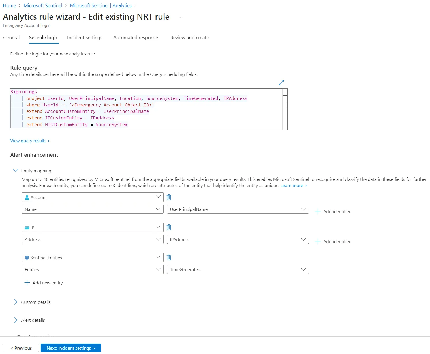 - Zusätzliche Informationen wie UPN, IP, etc. für den Incident mit “Entity mapping” bereitstellen