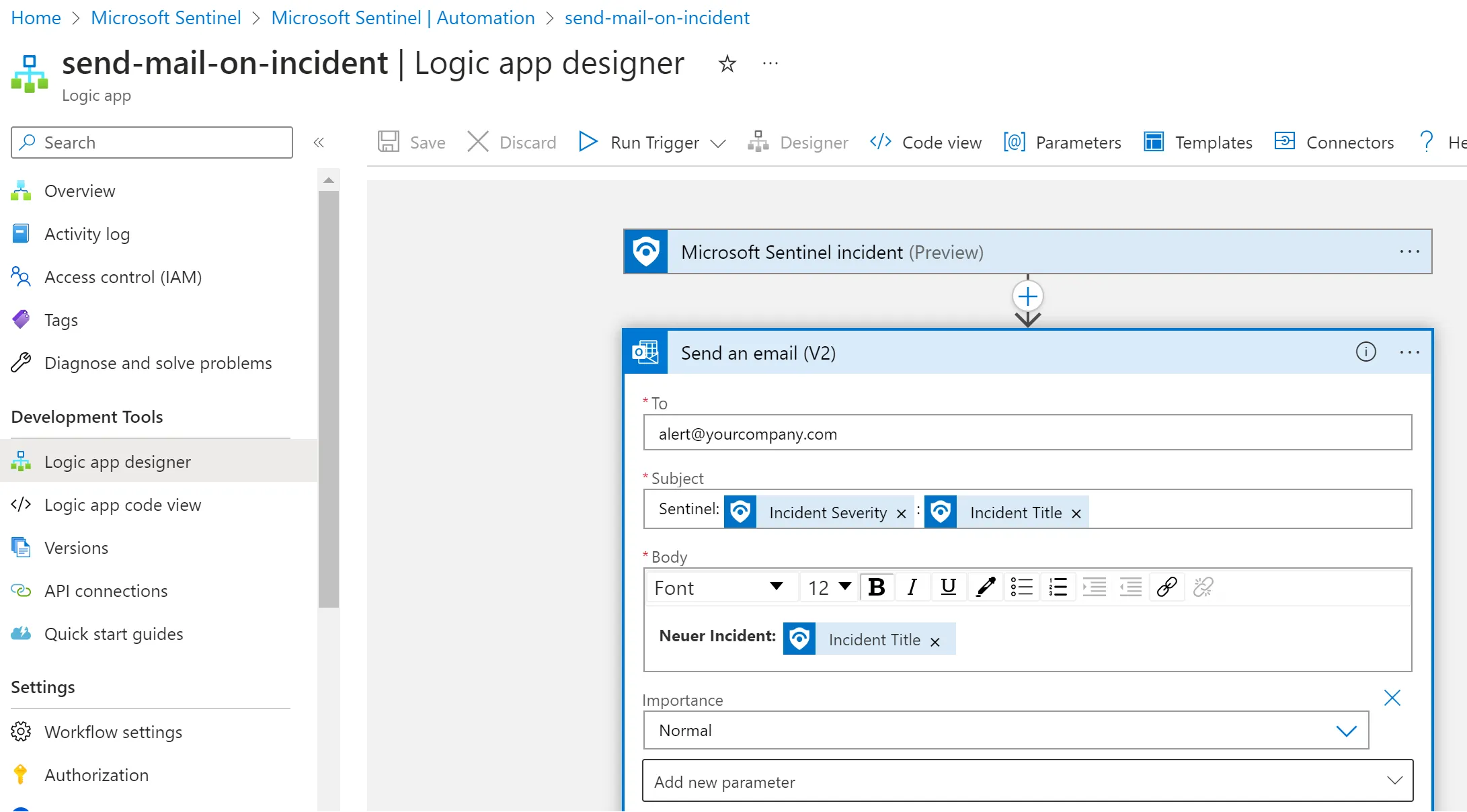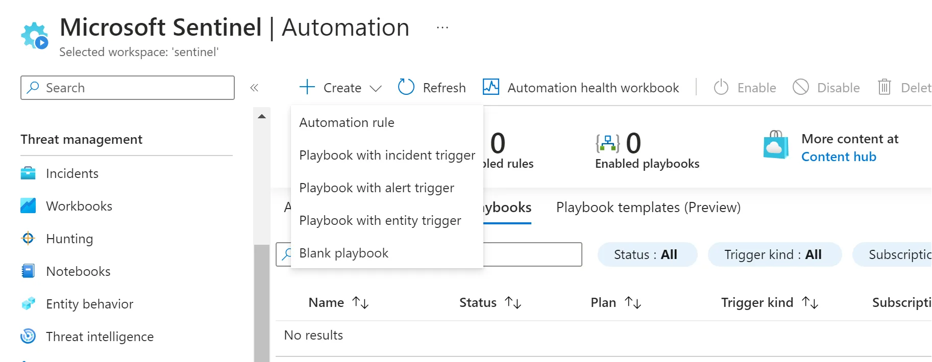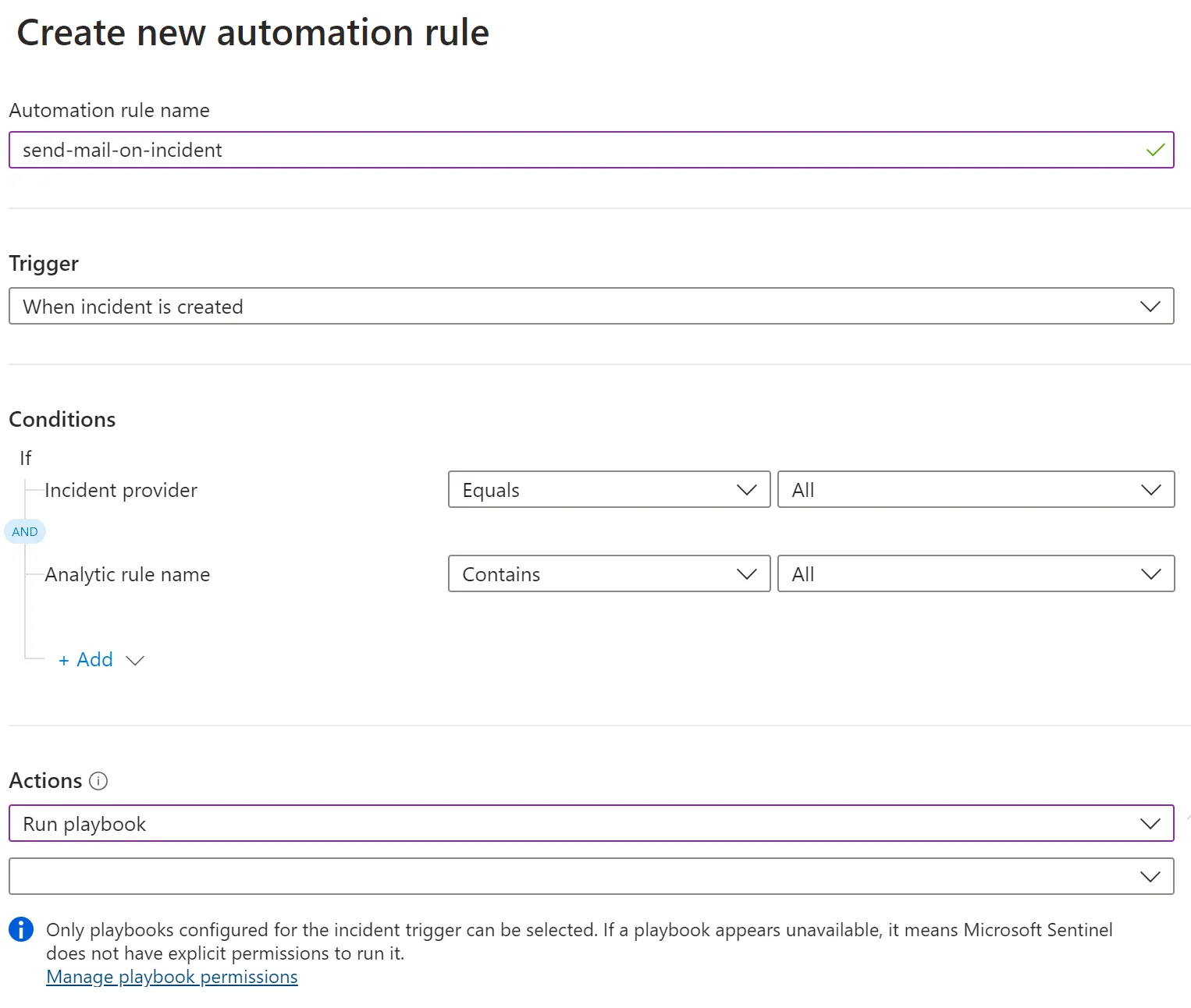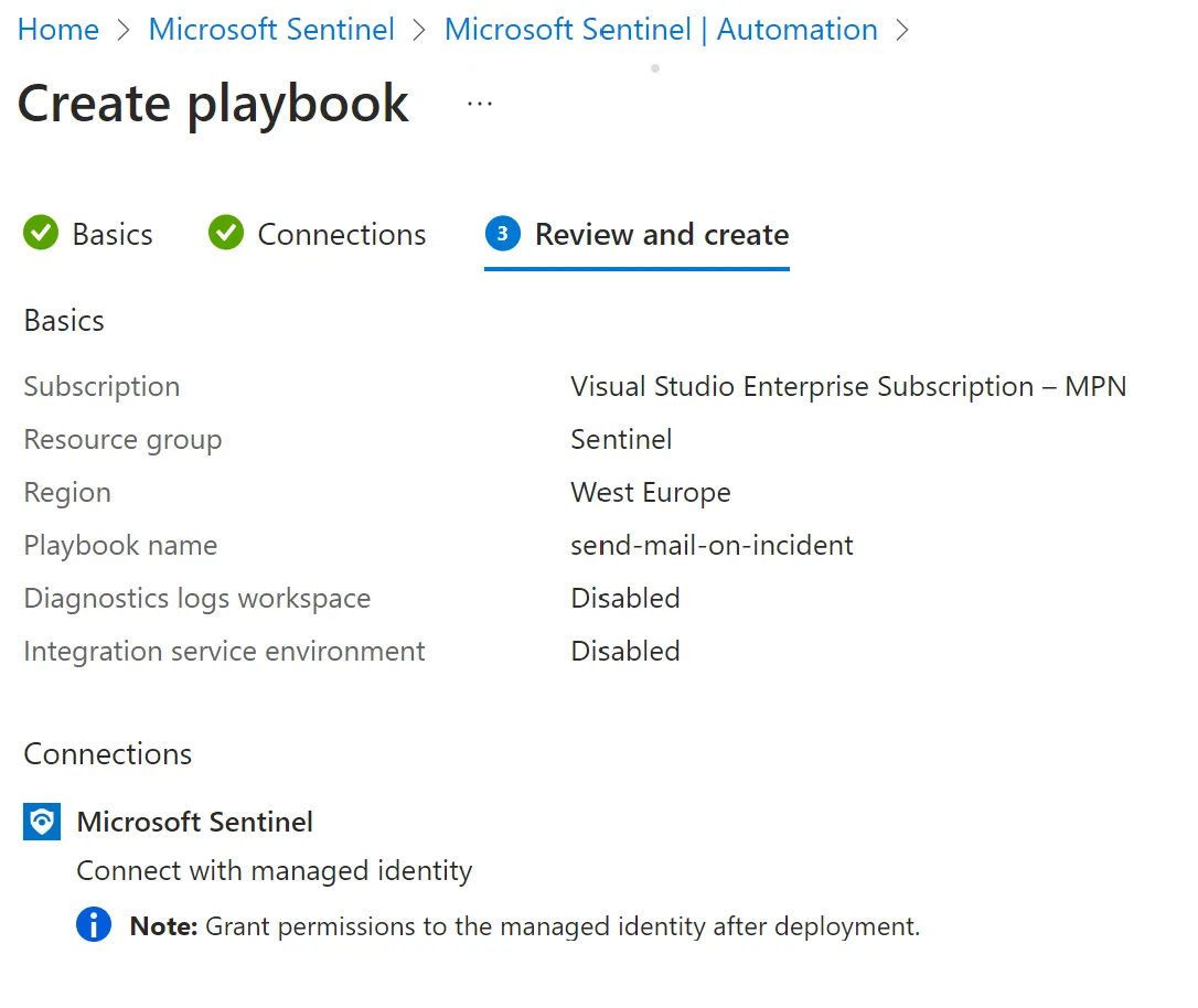 - Microsoft Sentinel > Automation > Active Playbooks > Create > Playbook with incident trigger