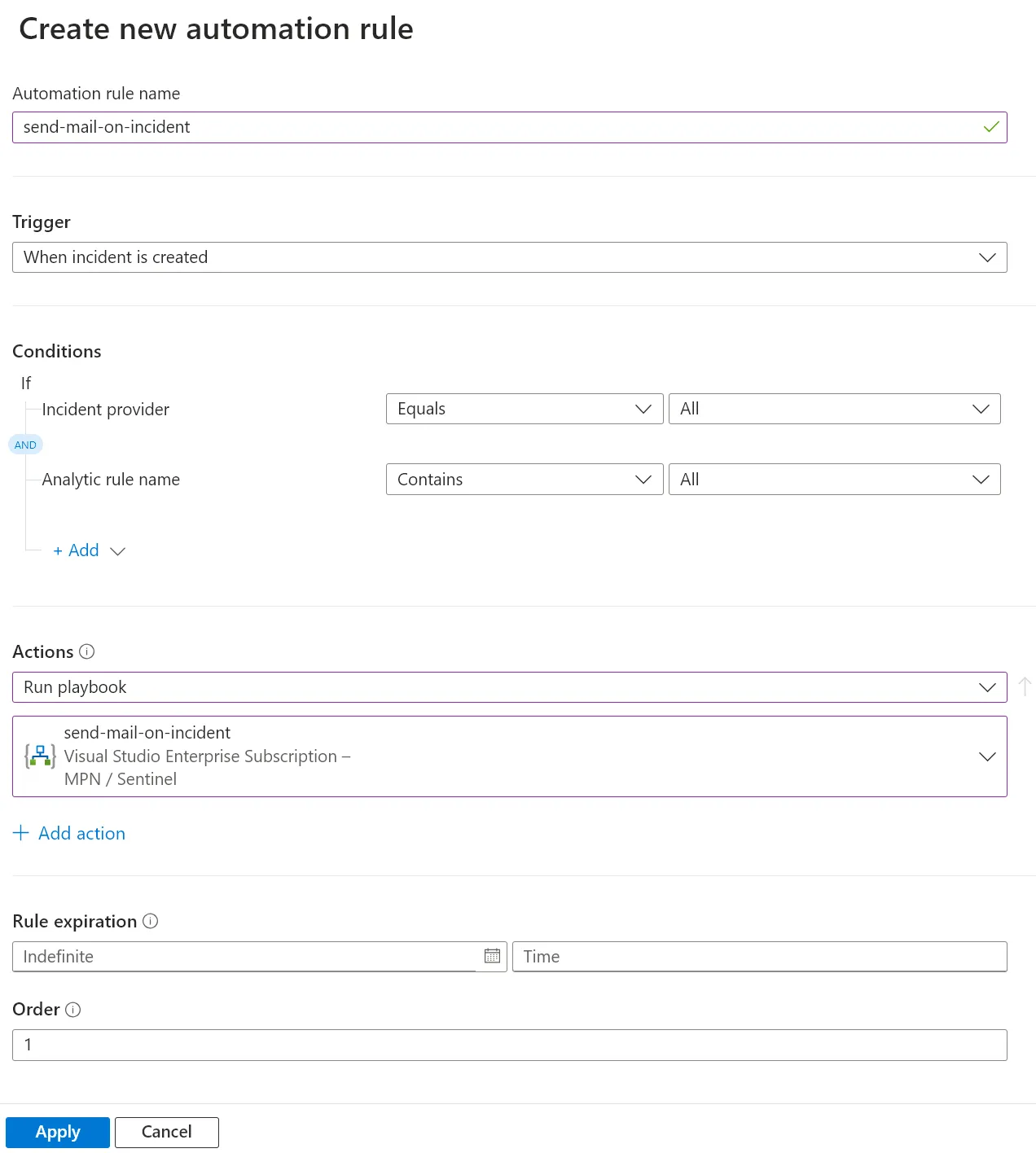 Microsoft Sentinel > Automation > Automation Rule > Create > Automation Rule