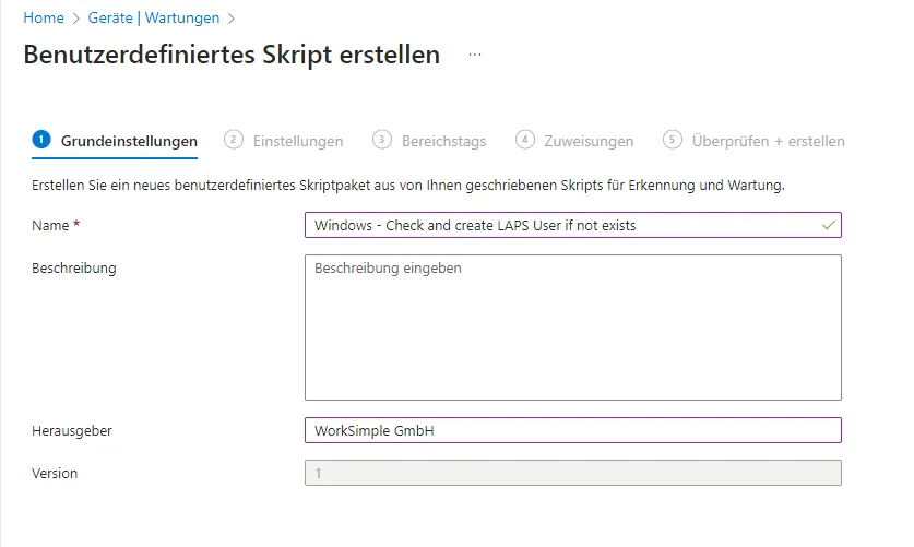 Windows LAPS-Benutzer über Remediations (Wartungen) anlegen