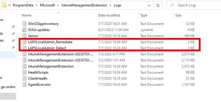 Auf dem Gerät werden zudem Protokolldateien erstellt. Diese werden im Ordner “C:\ProgramData\Microsoft\IntuneManagementExtension\Logs" angelegt.